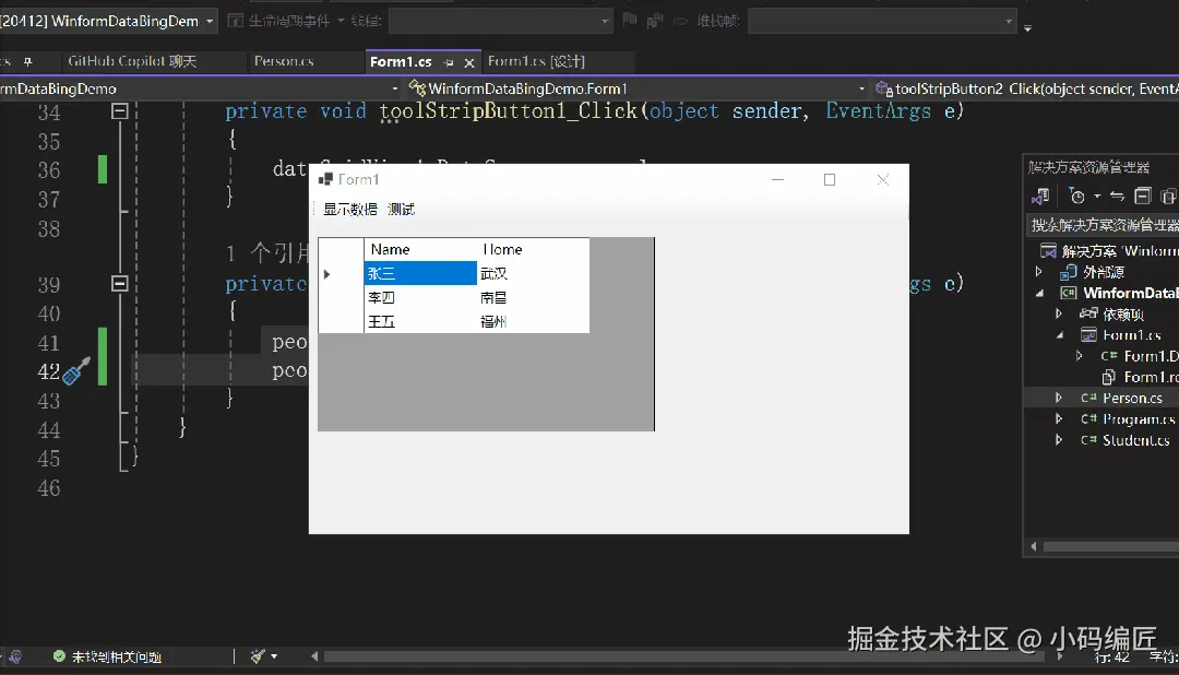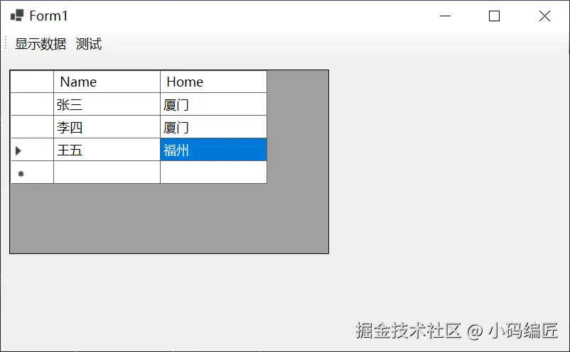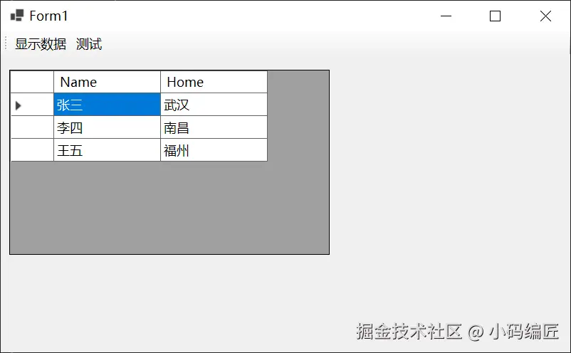 通常在 WinForms 中使用 DataGridView 控件展示数据时,我们会创建一个类作为数据模型,并将其对象列表绑定到 DataGridView 的 DataSource 属性中。