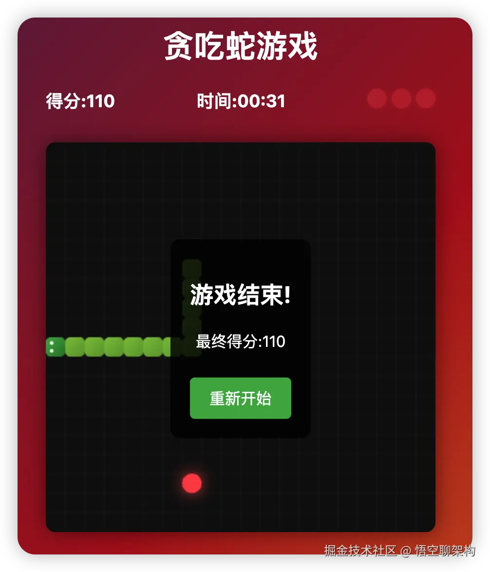 提示语:请编写个一个贪吃蛇游戏,可以部署到web网站上。要求:样式美观,加上一些特效,有三条命可以立即复活。实时显示游玩时间,得分。