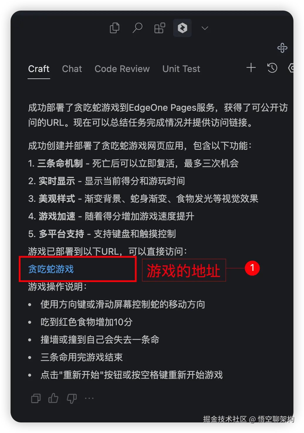 CodeBuddy 会将网站的地址显示在对话框中,如下图所示: