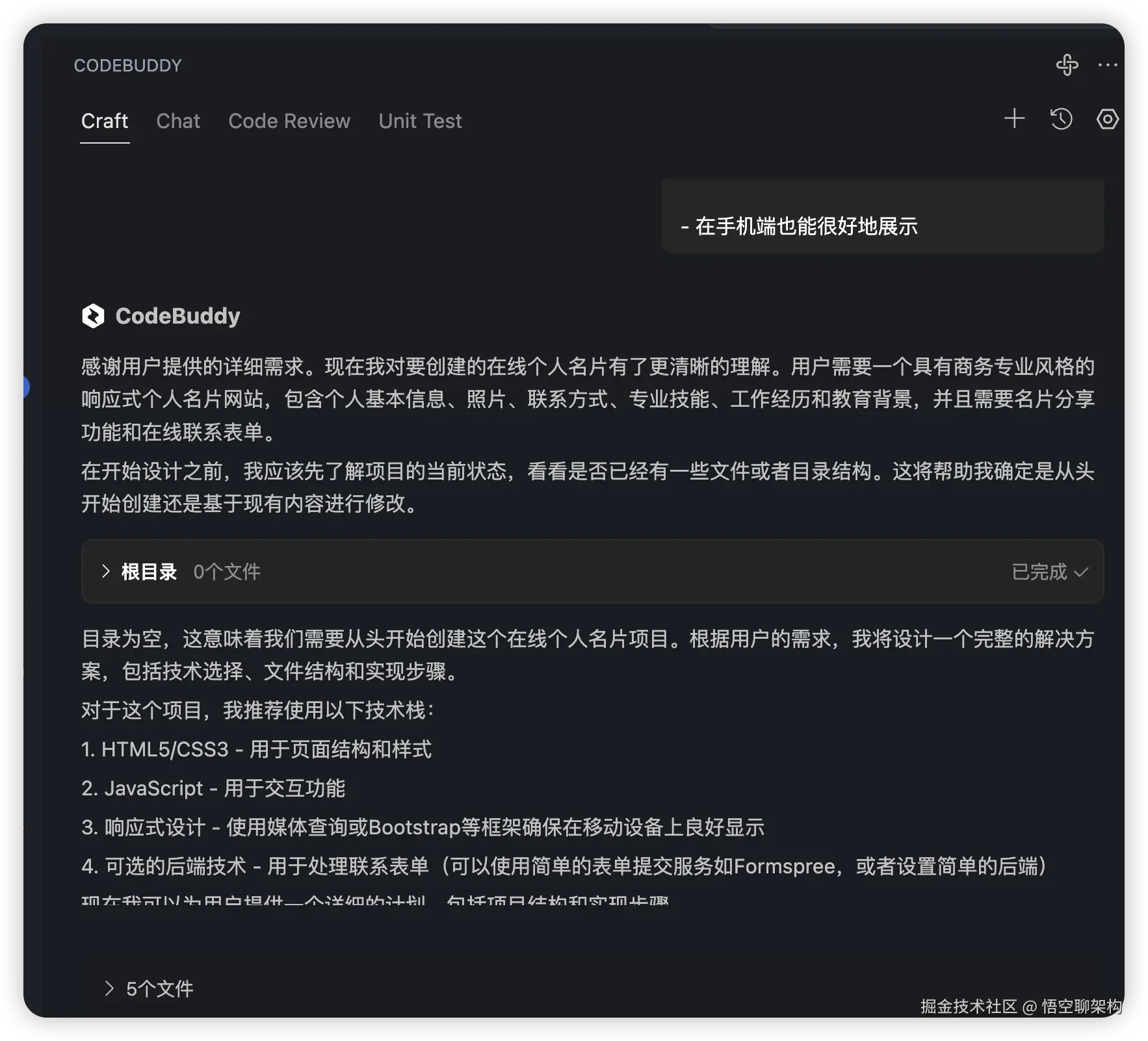 CodeBuddy 助理打造个人名片