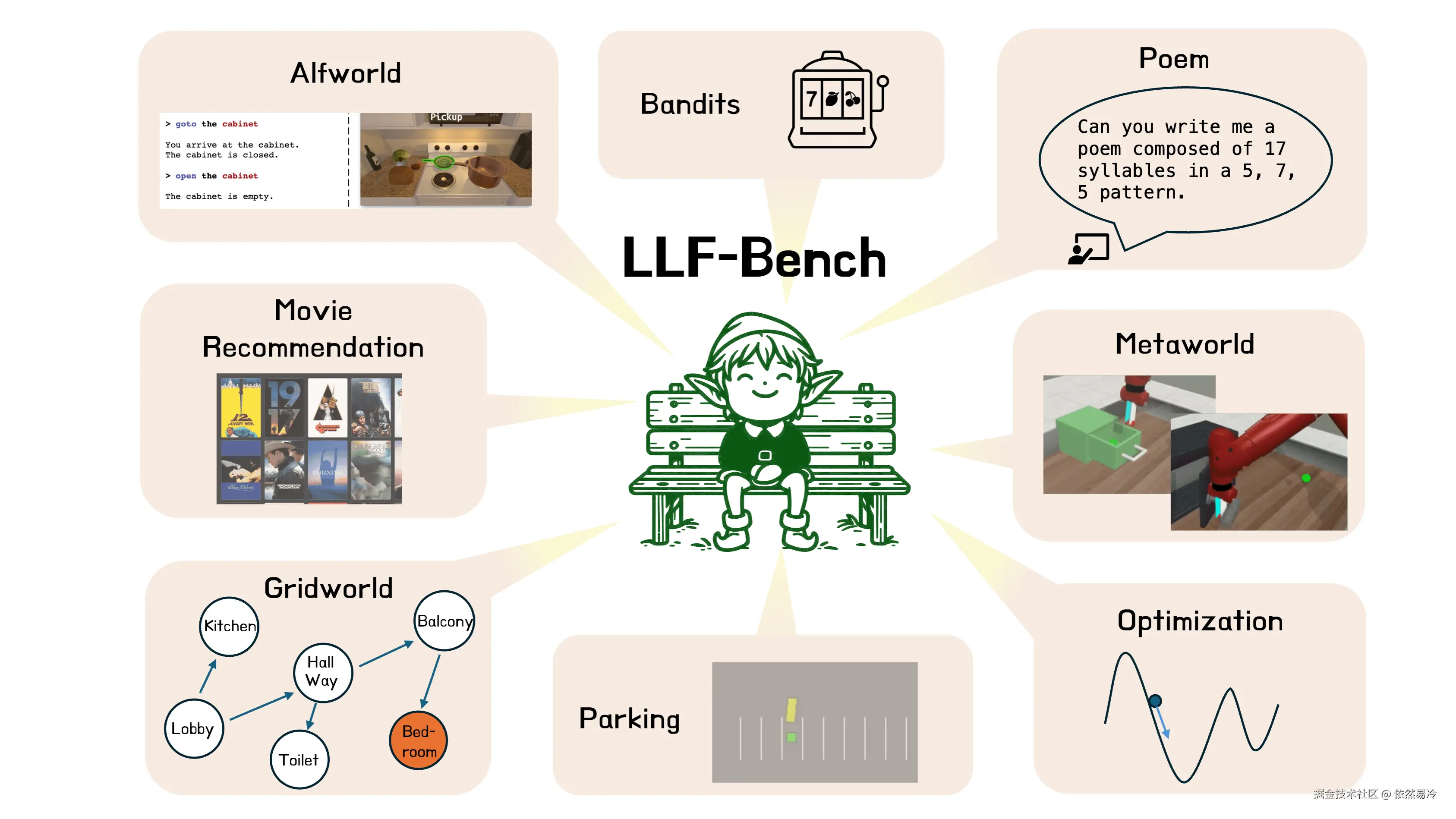 LLF-Bench 是由微软研究院等机构提出的交互式学习基准测试平台,旨在评估 AI Agent 通过自然语言反馈和指令进行学习的能力。其核心设计理念是模拟人类通过语言指导加速学习的过程,而非依赖传统强化学习的数值奖励机制。