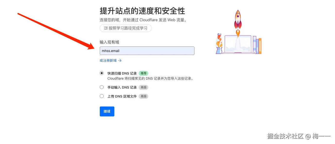 随后回到 cloudflare 页面点击继续,可以看到左上角状态显示名称服务器无效,等待即可。