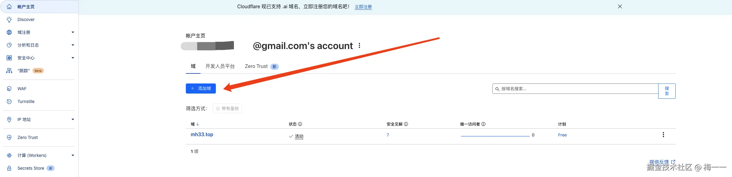 ps: cloudflare 常规情况下一个邮箱只被一个域名绑定