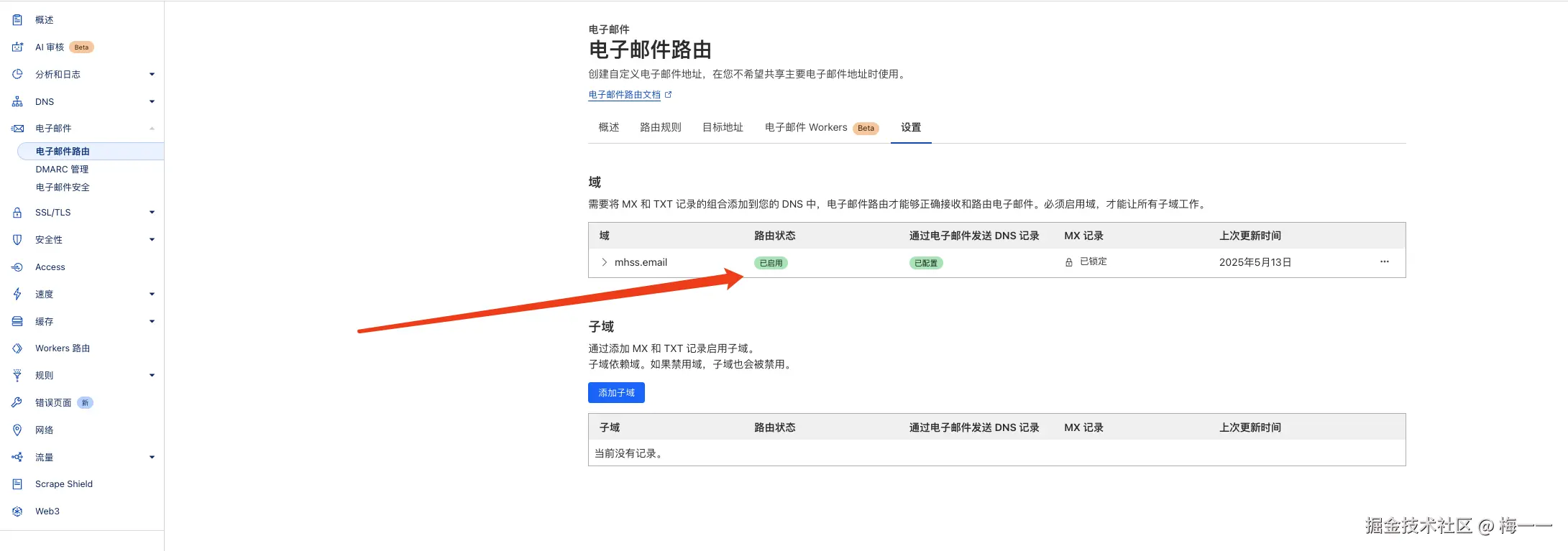 验证完后,我们刷新 cloudflare 页面,点击启用电子邮件路由