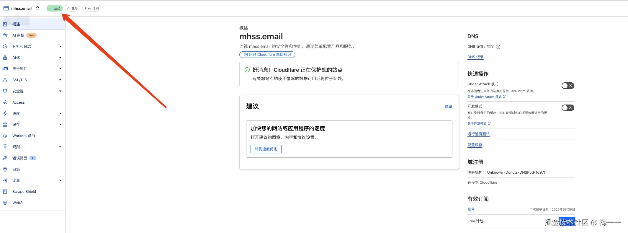 我们刷新 cloudflare 的页面可以看到域名左上角状态已经变成了活动。