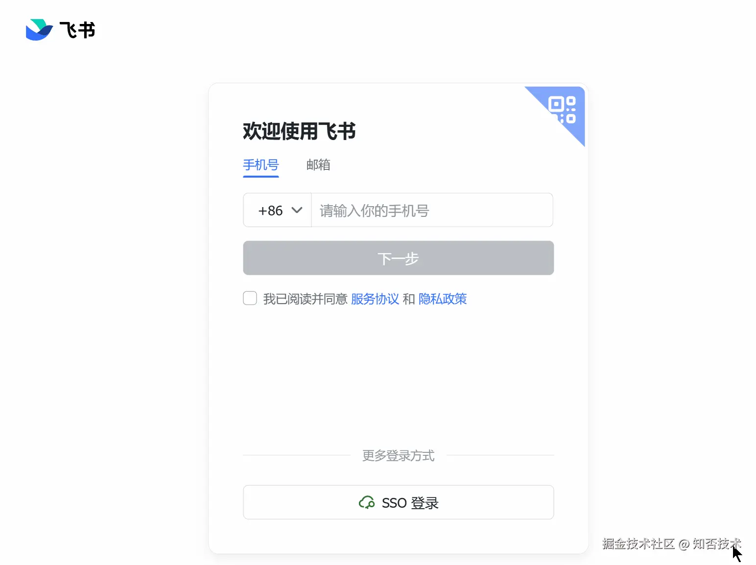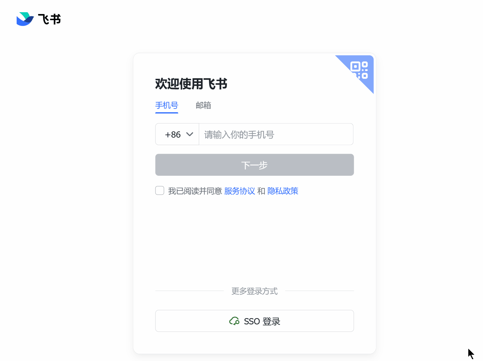现在很多网站的登录方式都包含账号登录和扫码登录,例如飞书: