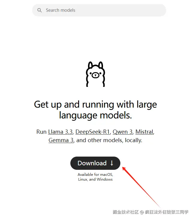 打开 ollama 官网,点击下载 (选择自己的操作系统)