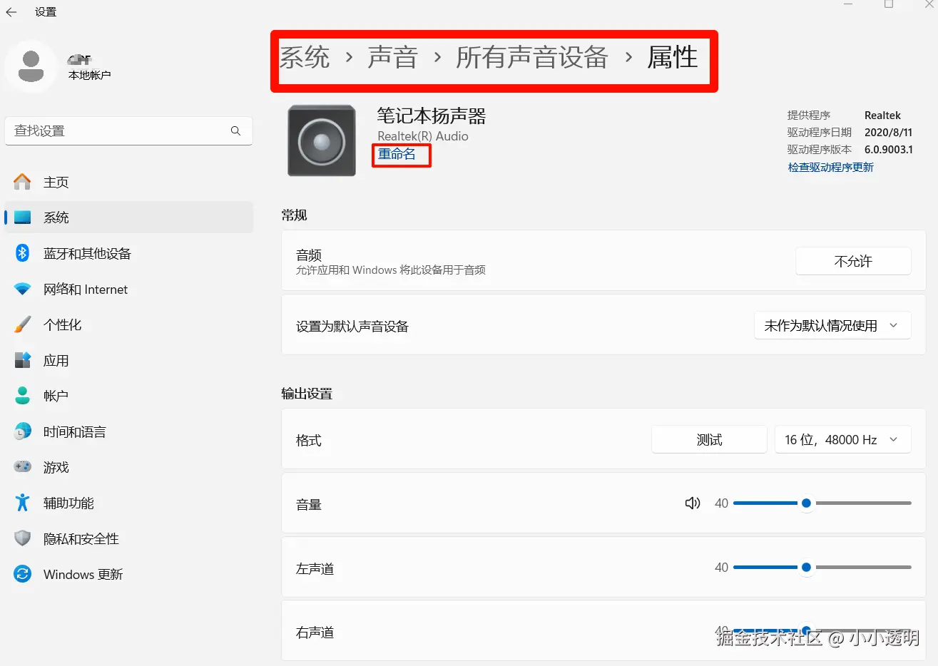 在上图中的重命名的位置对想要切换的音频名字进行修改,这一步主要是为了做区分,windows 对音频设备默认的名字比较乱,并且这个名字会在后续的代码中使用到,修改后名字的参考如下(名字中最好不要有特殊符号或者空格之类的,中文+字母即可):
