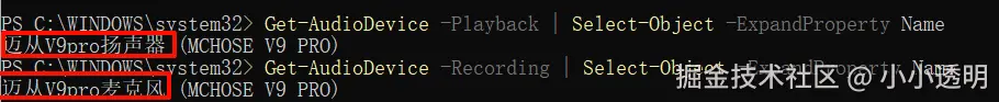 # 使用Get-AudioDevice命令(需要先安装 AudioDeviceCmdlets 模块)