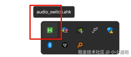audio_switch.ahk快捷键,运行快捷键示例(需保持该示例一直运行,不可关闭),任务栏会出现 如下图标: