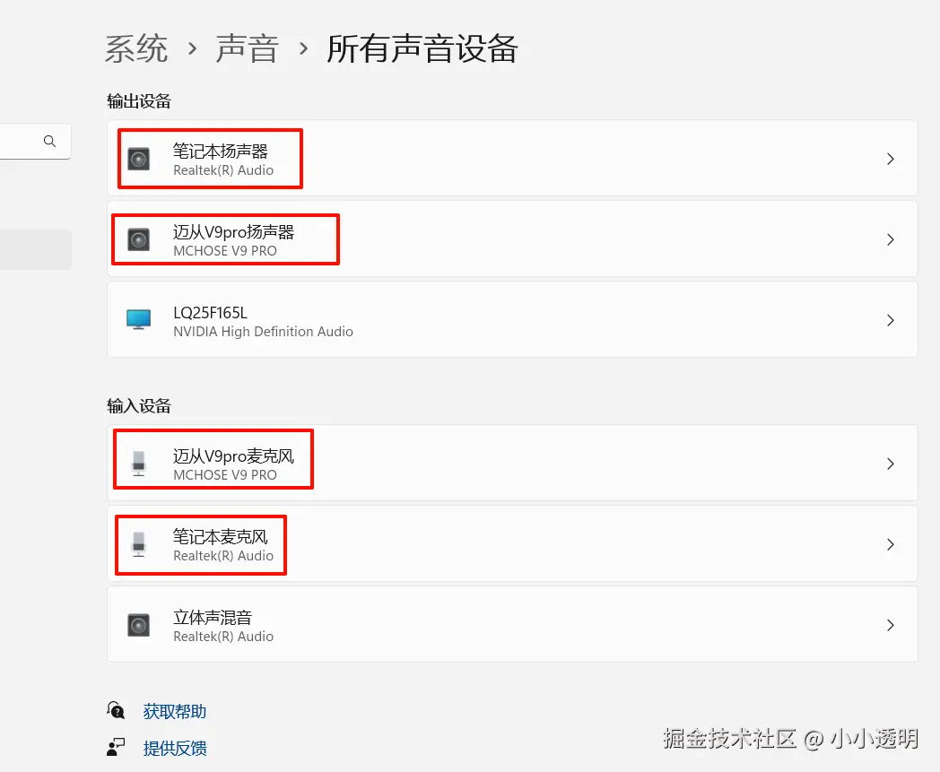 上图中就是我需要自动切换的两个设备,分别为笔记本和蓝牙耳机的扬声器和麦克风。