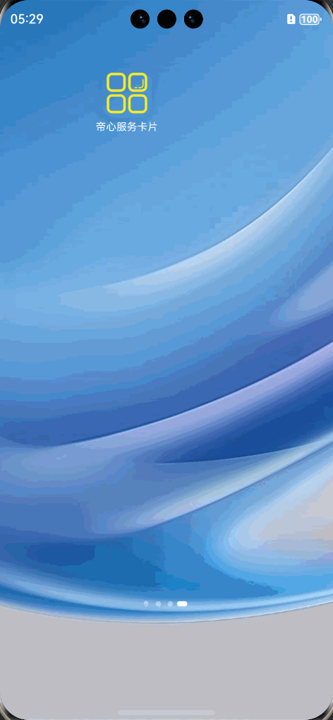 长按应用图标/元服务右上角功能键,进行卡片添加。将卡片添加到桌面进行显示。值得注意的是,在添加卡片时,会自动触发卡片生命周期文件 src/main/ets/entryformability/EntryFormAbility.ets中的onAddForm方法。