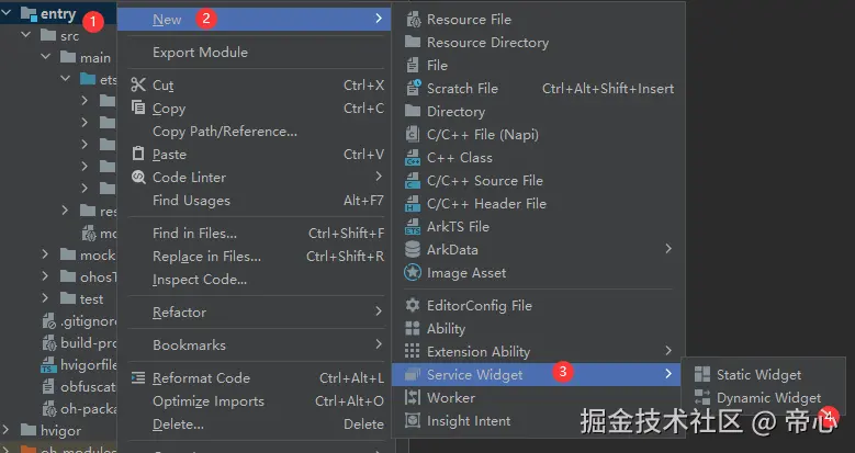 在已有的应用工程中,可以通过右键新建ArkTS卡片,具体的操作方式如下。