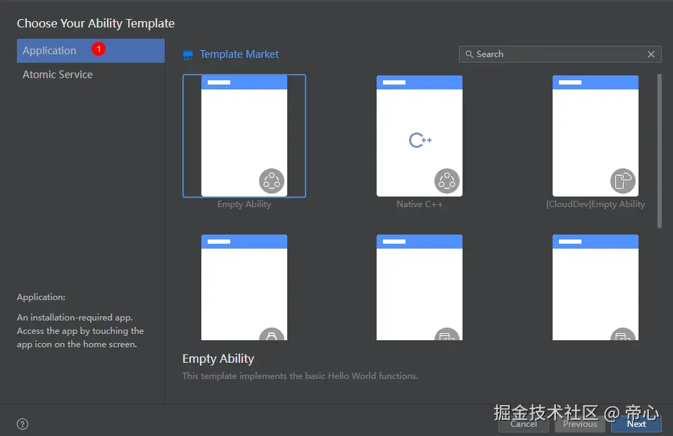 - 创建工程时,选择Application,可以在创建工程后右键新建卡片。