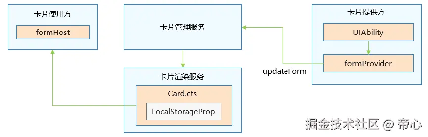 ArkTS卡片框架为提供方提供了updateForm接口,用来触发卡片的页面更新能力。