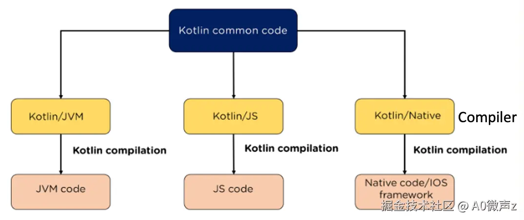 而 KMP 为了将 Kotlin 源代码编译成不同的目标平台代码,就需要将 Kotlin 的编译产物进一步向不同的平台转化。