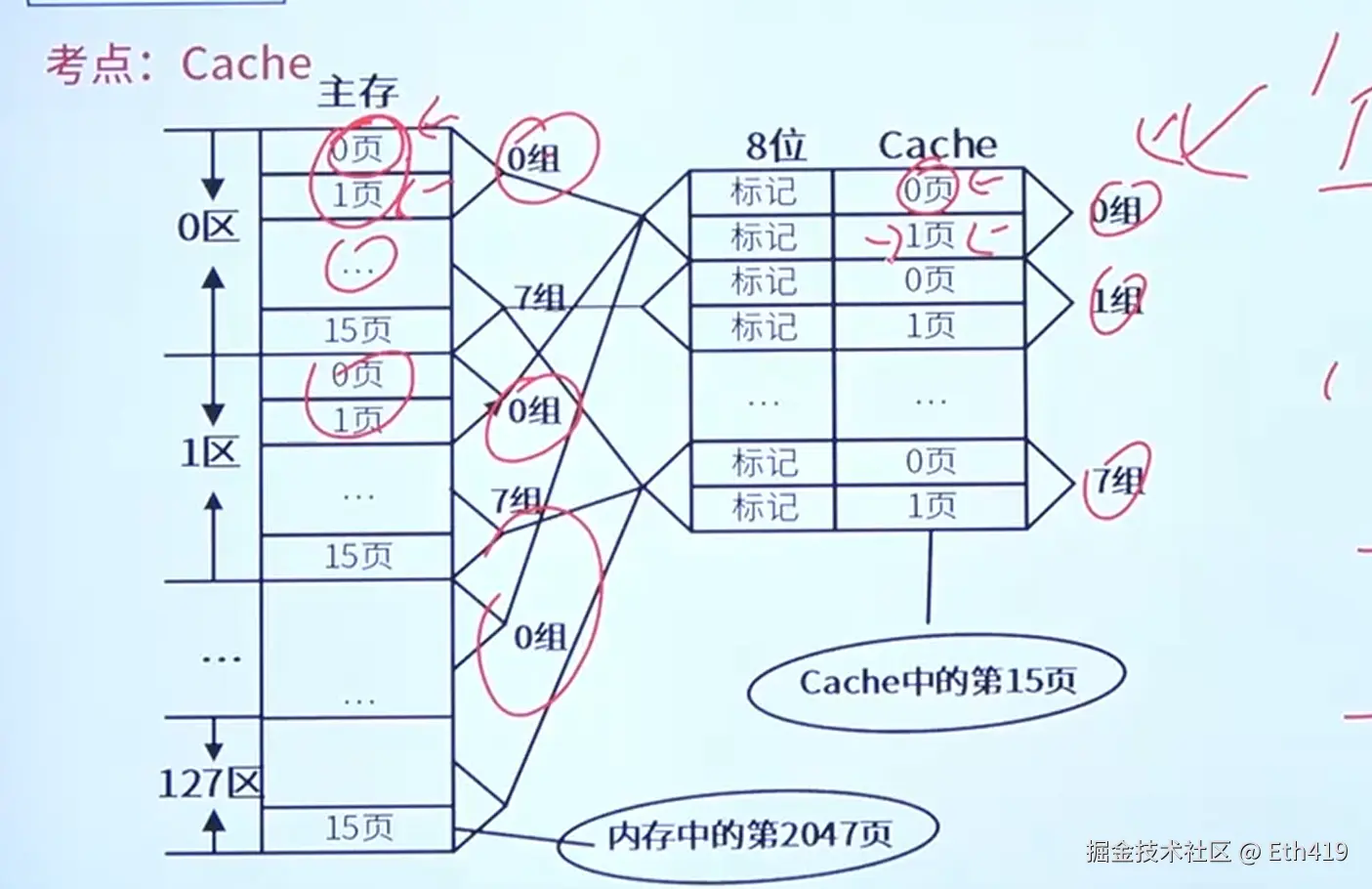 然后每个组里面的页是进行全相联,就是会等cache一个组里面满了才会冲突