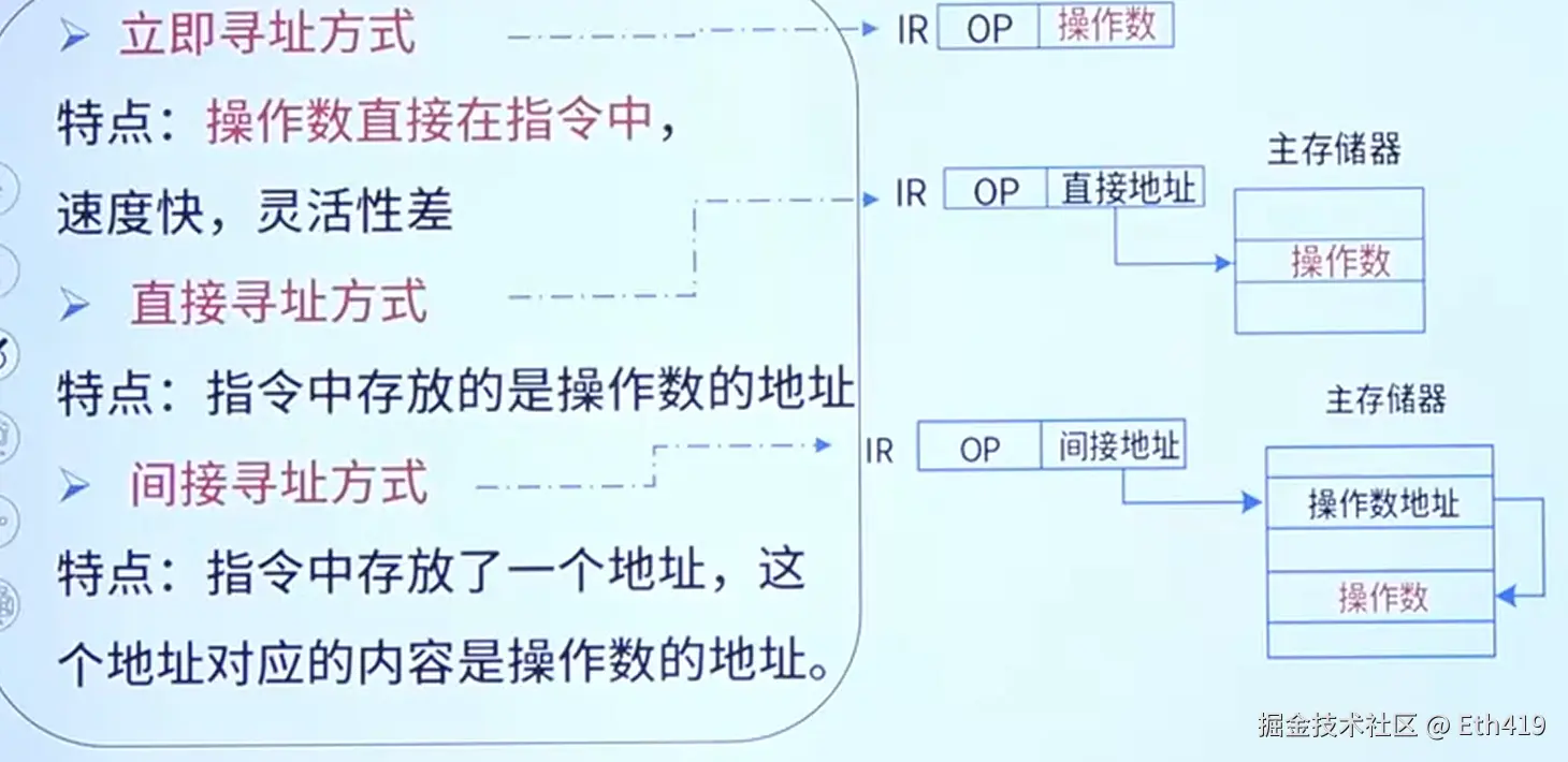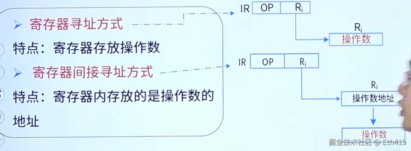 指令存放的是寄存器的地址,优点就是效率高,但是因为是在寄存器中,不能存放太多