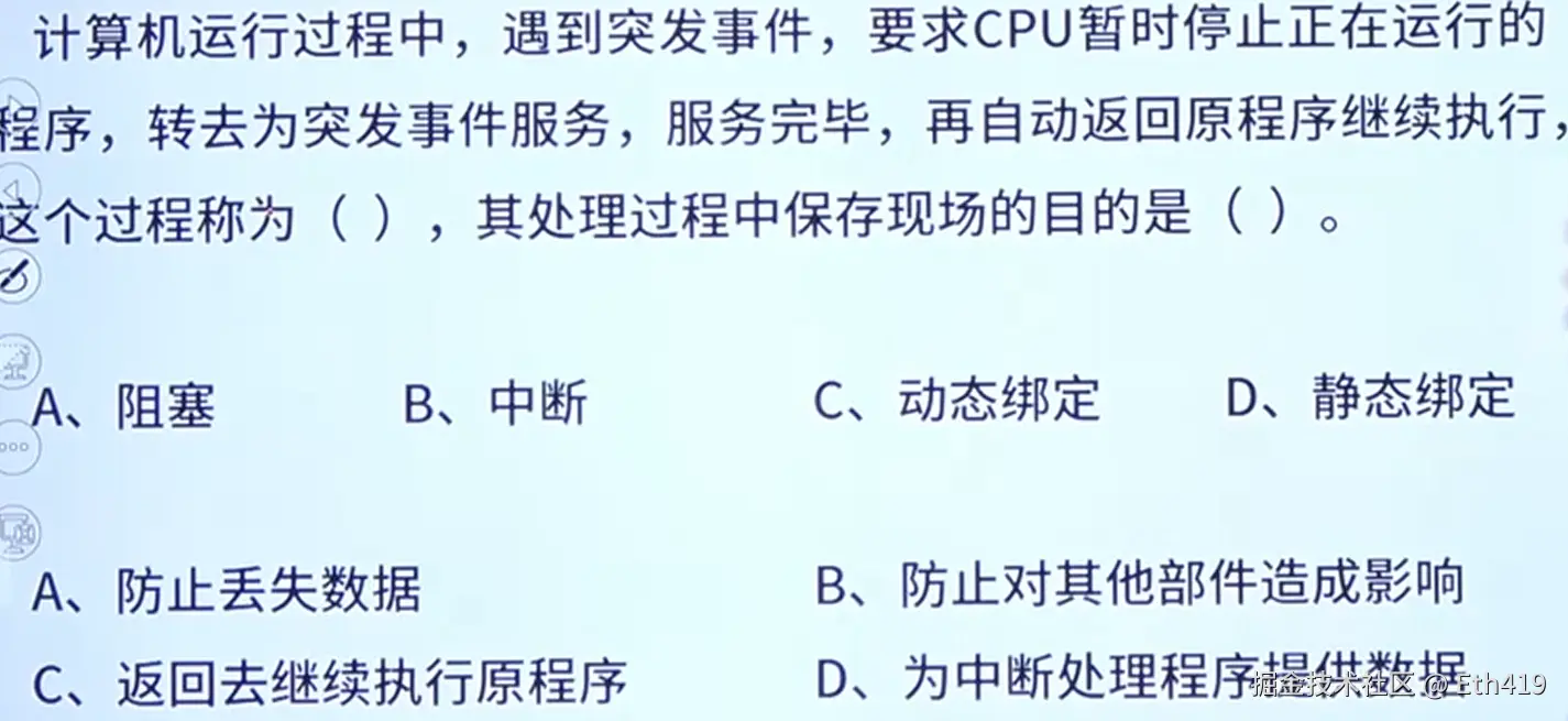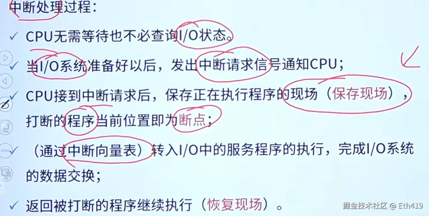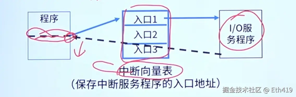 程序首先受到命令中断,就把数据存放到向量表里面,然后执行完别的再从向量表里面执行需要执行的程序