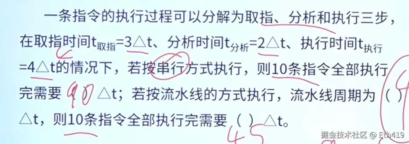 总共算出来的就是第一个指令时间加上后面(n-1)*三个步骤中其中一个步骤执行的最大时间=流水执行时间