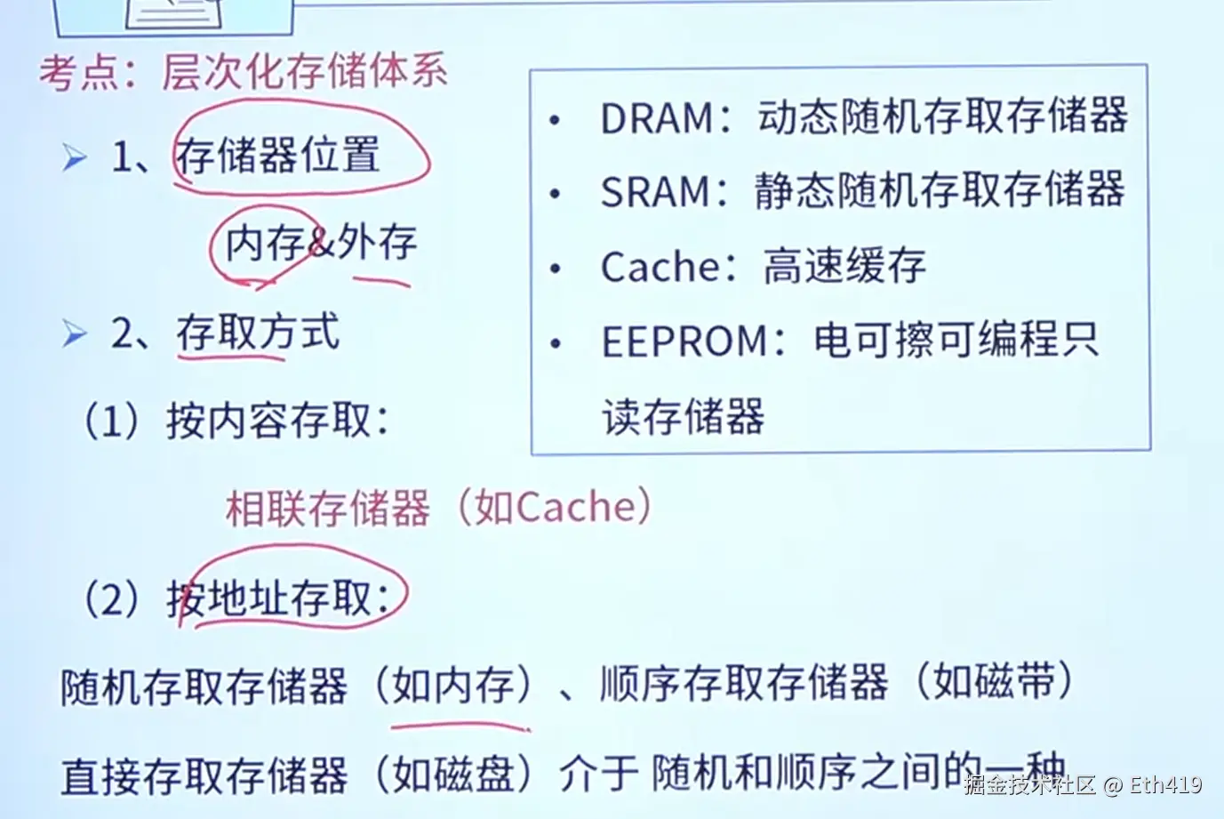 存取方式有两种,一种是按内容读取,2的是按地址存取