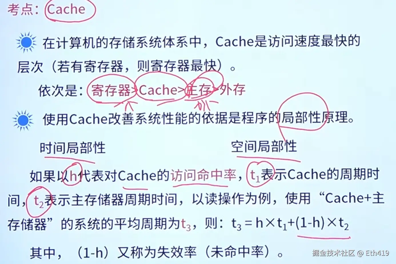 如果h是表示的cache访问命中率那么主存的命中率为1-h t2是主存周期时间是t2 t1是缓存时间的话