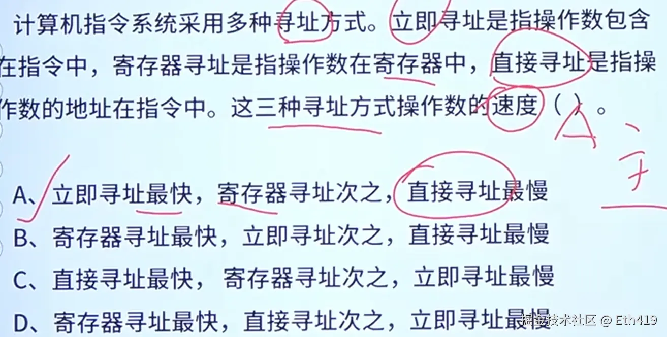 寄存器寻址速度快与直接寻址,因为直接寻址是在主存,寄存器速度快于主存