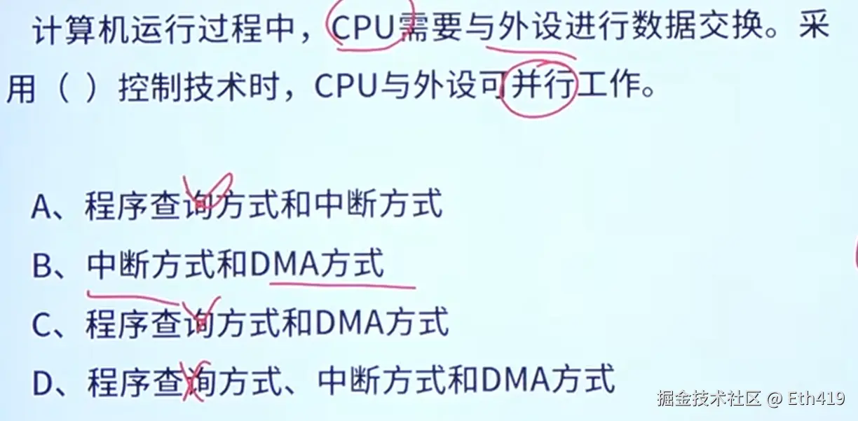 程序控制查询方式(效率低),程序中断方式,DMA方式