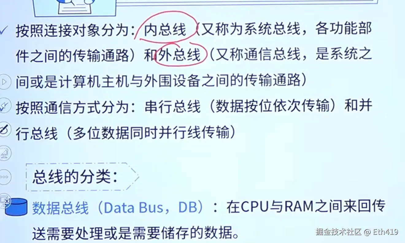 按照链接对象可以分为外总线(通信总线)和内总线(系统总线)