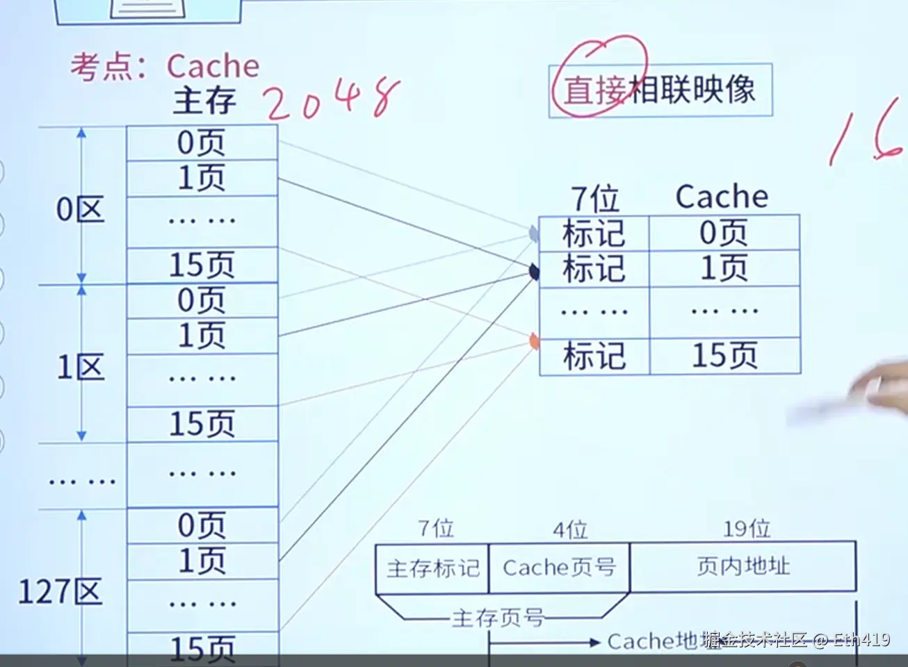 所有的主存的0页只能放到cache的0页来,会有冲突