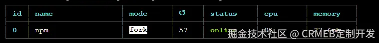11.设置PM2守护npm进程:pm2 start npm -- start 出现此画面运行模板成功