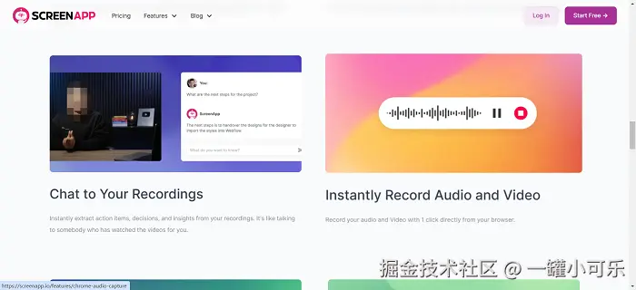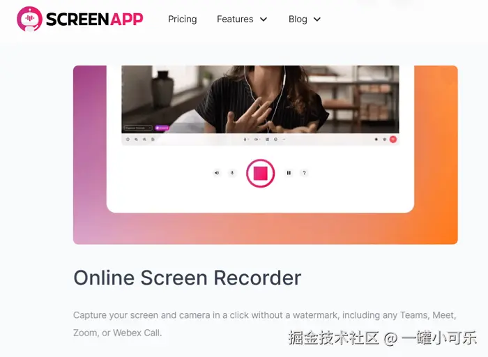 ScreenApp的界面简洁,操作简单,新手也能很快上手。它支持多种录制模式,像全屏录制、区域录制都可以,还能录制系统声音和麦克风声音。