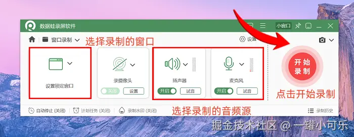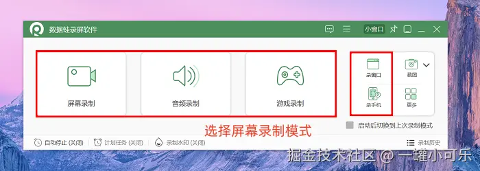 电脑录屏软件哪个好?我们先来看看这款数据 蛙录屏软件,它支持好几种录制模式,像屏幕录制、窗口录制、游戏录制、摄像头录制等等。要是你想给同事做个软件操作演示,就直接用窗口录制模式,能精准录到软件界面,不会录到其他不相关的东西,特别方便。