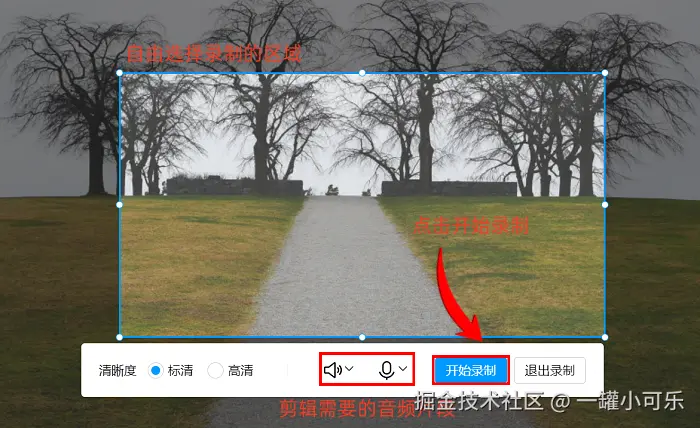 步骤2:开始录制前,我们还能自由调整录制区域、摄像头、声音这些设置。如果你想调整录制的具体参数,就点击 “输出设置” 进行调整。都设置好后,点击 “开始录制” 就可以啦。