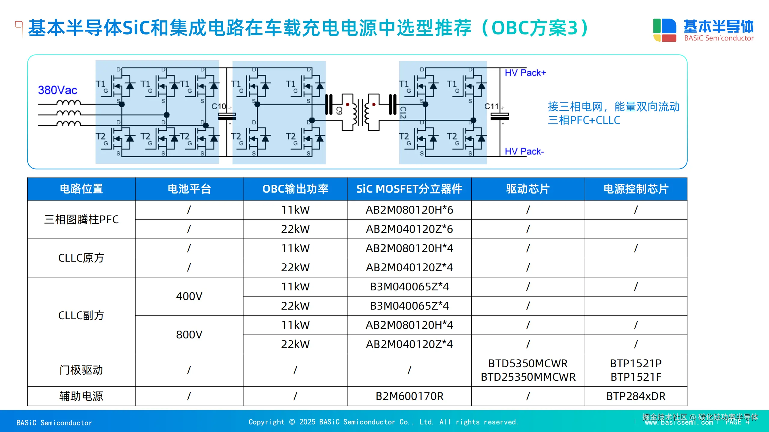 BASIC半导体针对车载充电与直流桩的多样化需求,推出多套优化方案: