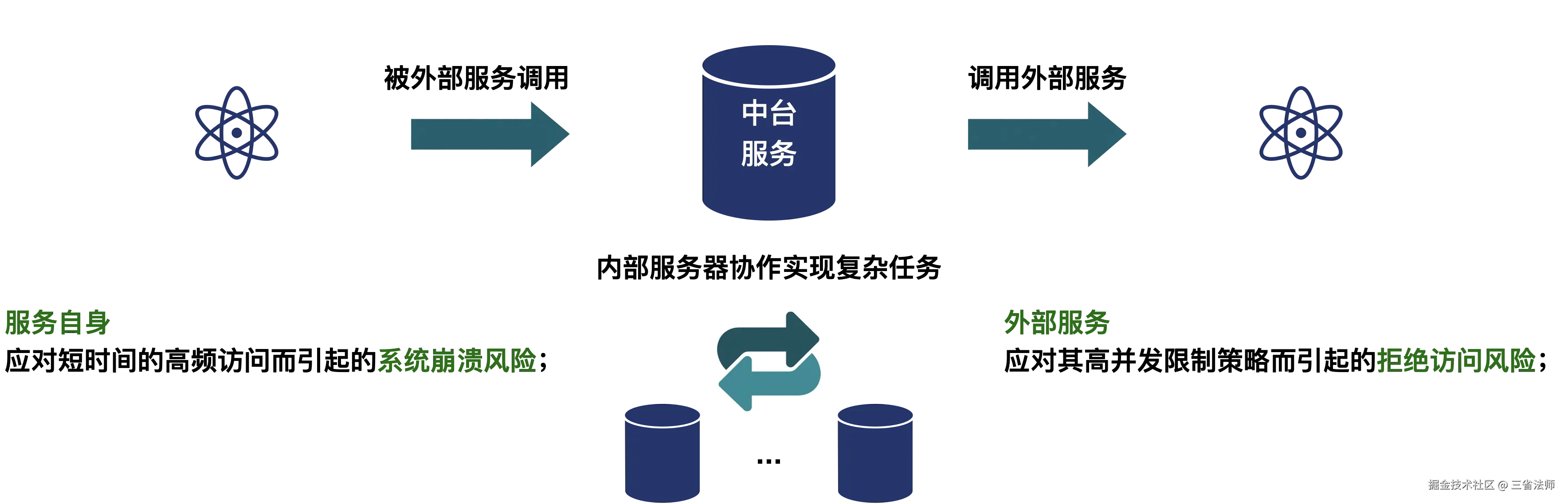 这是个比较常见的业务场景,即对成熟的平台服务进行二次封装,增加业务自定义的逻辑。结合下图的服务架构,高并发往往是出现在服务自身被短时间高频访问或者自身调用下游服务导致整体系统出现服务不可用。