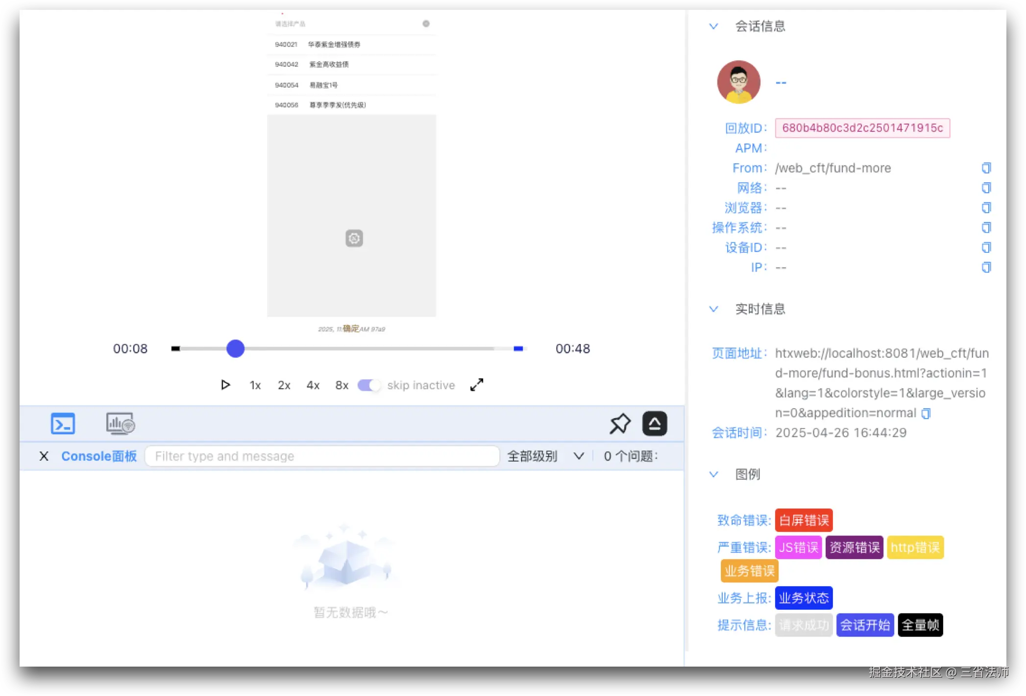 以下图基于RRWeb实现的会话回放工具为例。