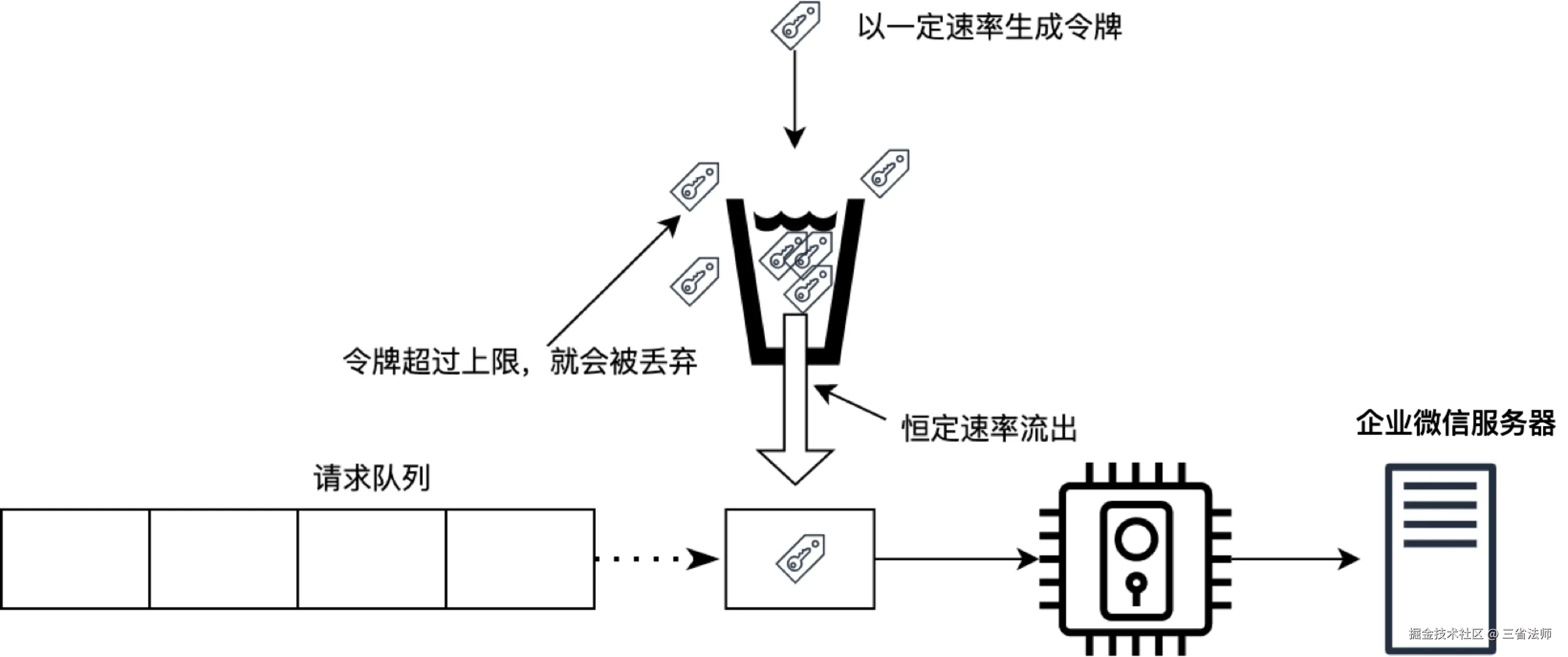业务背景中客户标签是运营过程中最重要的资产,需要尽可能不要丢弃,因此我们采用了令牌桶算法策略。