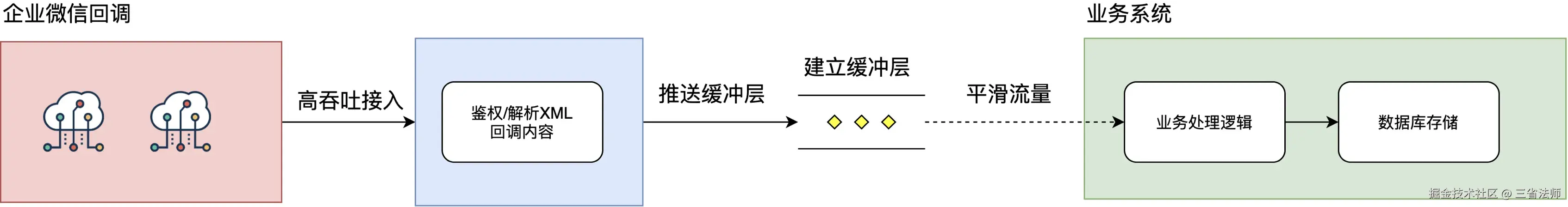 在高并发章节,我们提到了异步处理和消息队列可以缓存服务器无法处理的任务,同样我们可以建立一个缓存层,将高频的回调进行缓冲,然后分发到对应的业务处理集群内。