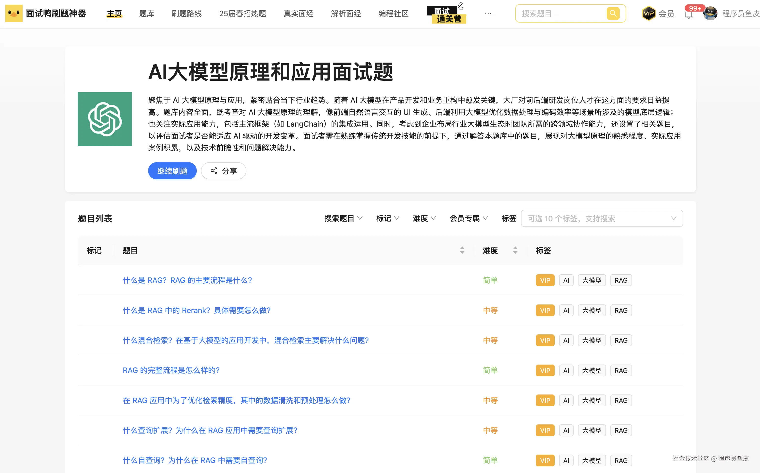 在我们的 程序员面试刷题神器 - 面试鸭 中也新出了 AI 大模型相关的面试题,每道题目都能让你学到很多知识~
