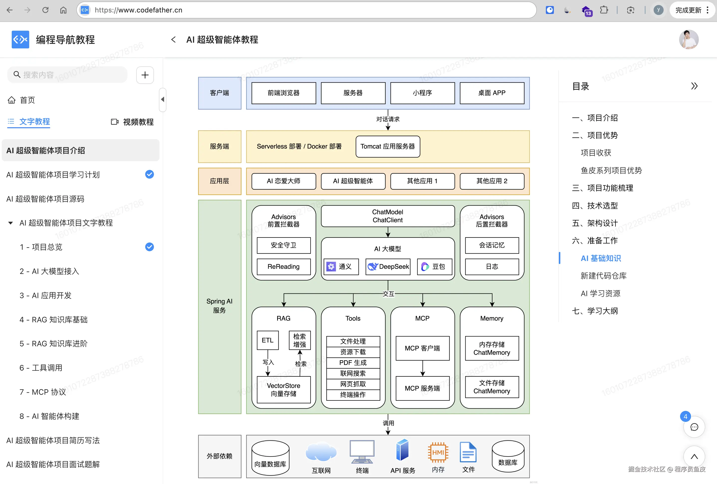 正好我最近刚带编程导航的同学做完一套 AI 超级智能体实战项目,毫不夸张地说,我已经把 Spring AI 玩得 “手拿把掐” 了。