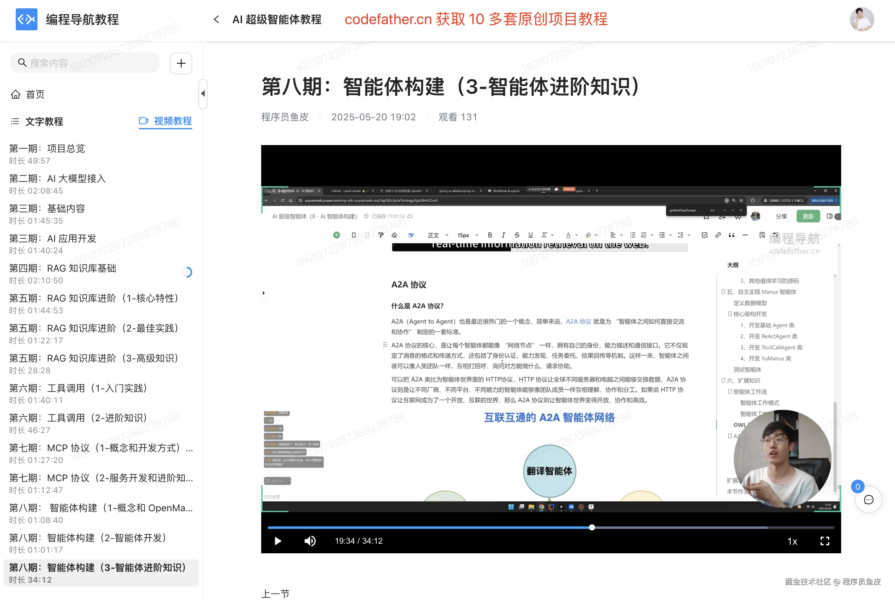 就先分享到这里,我全程直播带大家做的 AI 超级智能体新项目今天就完结了,教程中给大家讲解了 Spring AI 几乎所有的特性和高级用法,甚至带大家阅读开源 Manus 项目的源码并且实现了拥有自主规划能力的 AI 智能体,欢迎大家来 编程导航 学习。