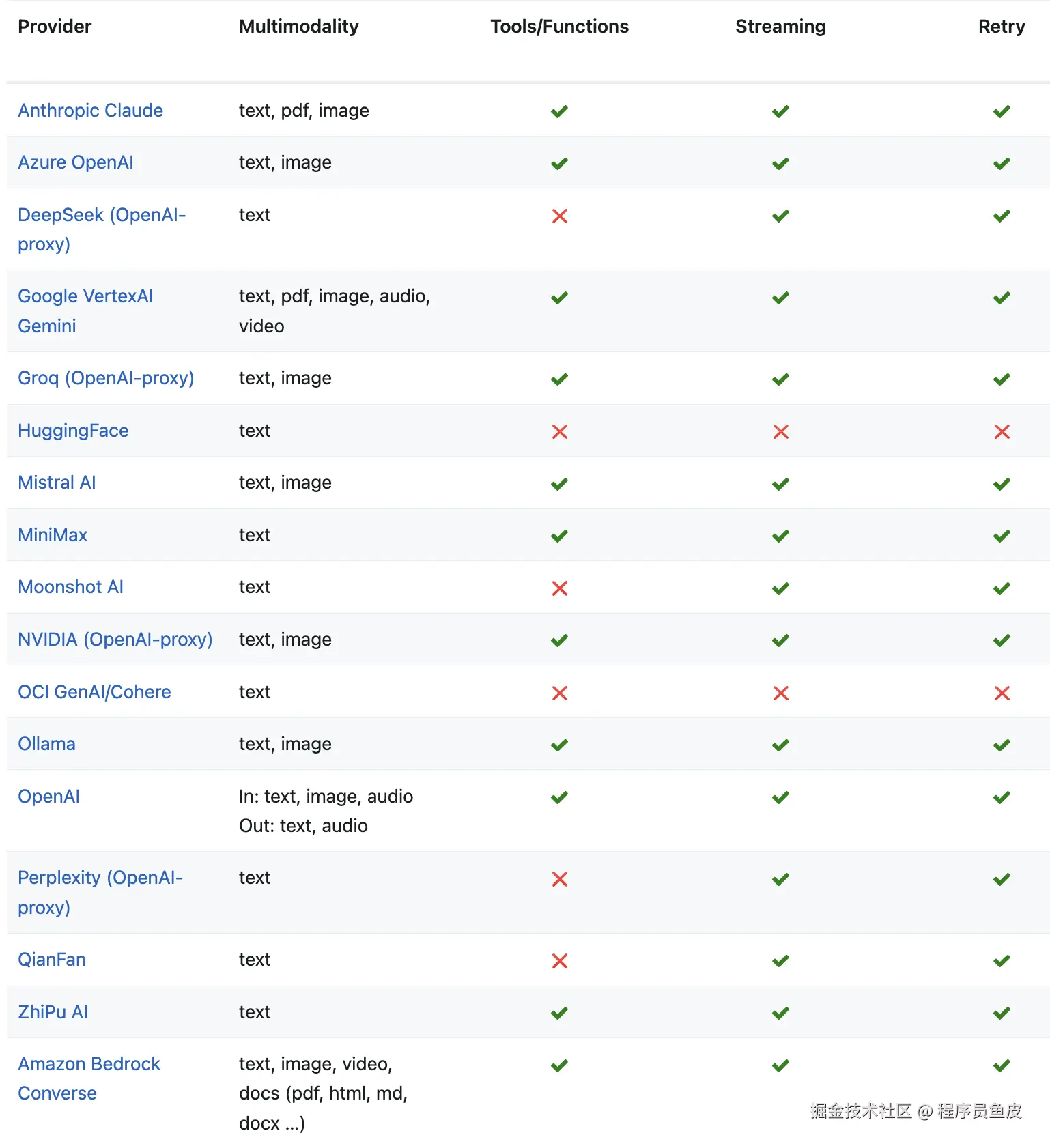 Spring AI 不仅提供了统一接口支持多种大模型,让我们可以轻松切换模型而无需修改业务代码。它还支持多模态大模型调用,使 AI 能够同时处理文本、图像、音频等多种输入类型。