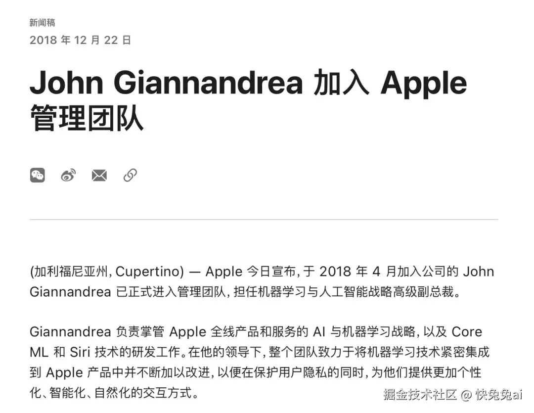 2018年,苹果大手一挥,把谷歌搜索&AI的顶级大佬John Giannandrea(大家直接叫他JG)挖过来,誓要在AI上开卷。