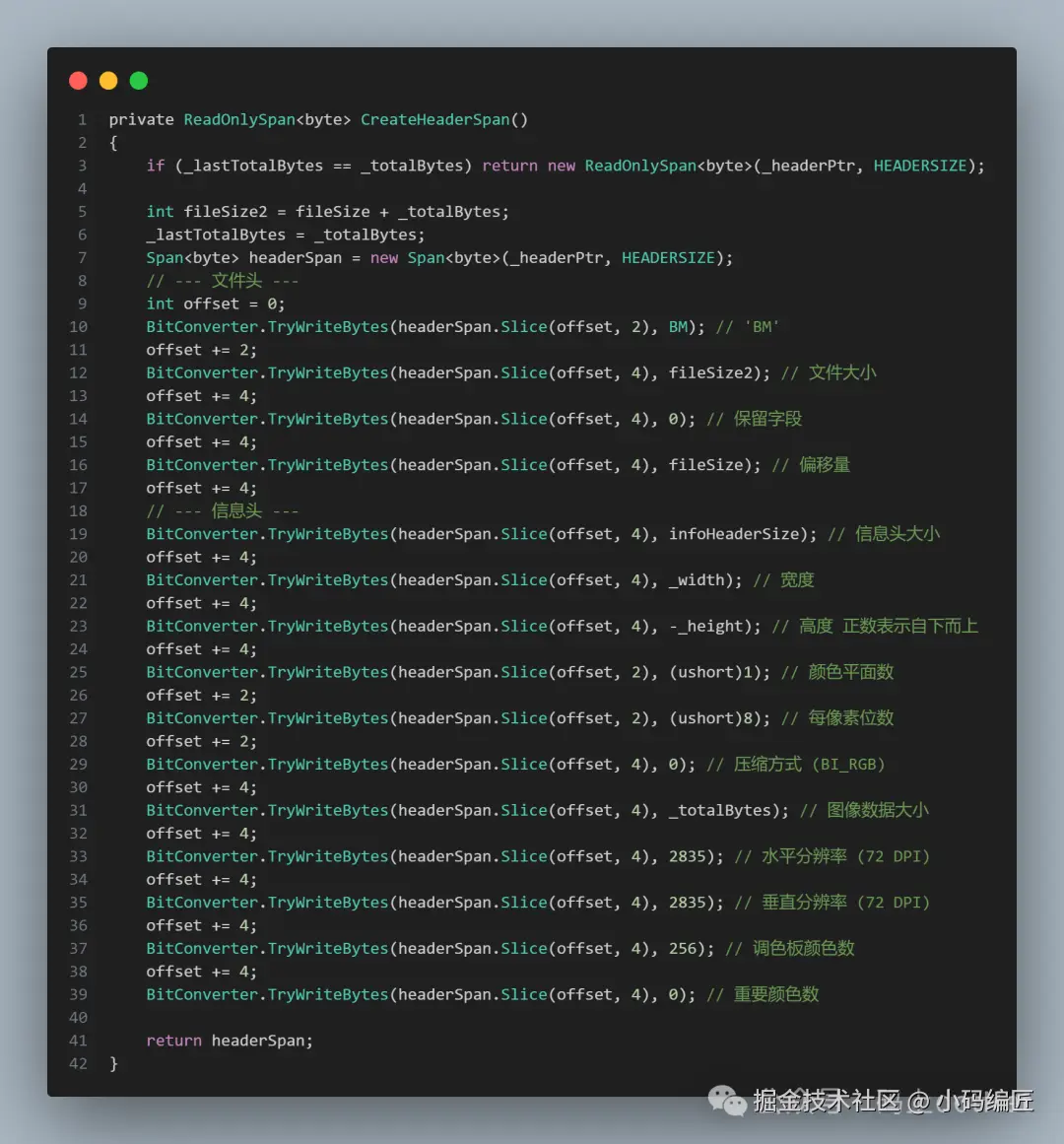 由于图像尺寸通常不变,文件头和信息头可以预先创建并缓存,提高效率。