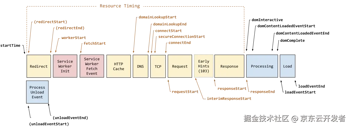 使用 Performance 指标分析用户体验,window.performance 接口记录了一次网页加载全过程中每个生命周期的指标,如下图所示。但Performance指标有一定局限性。