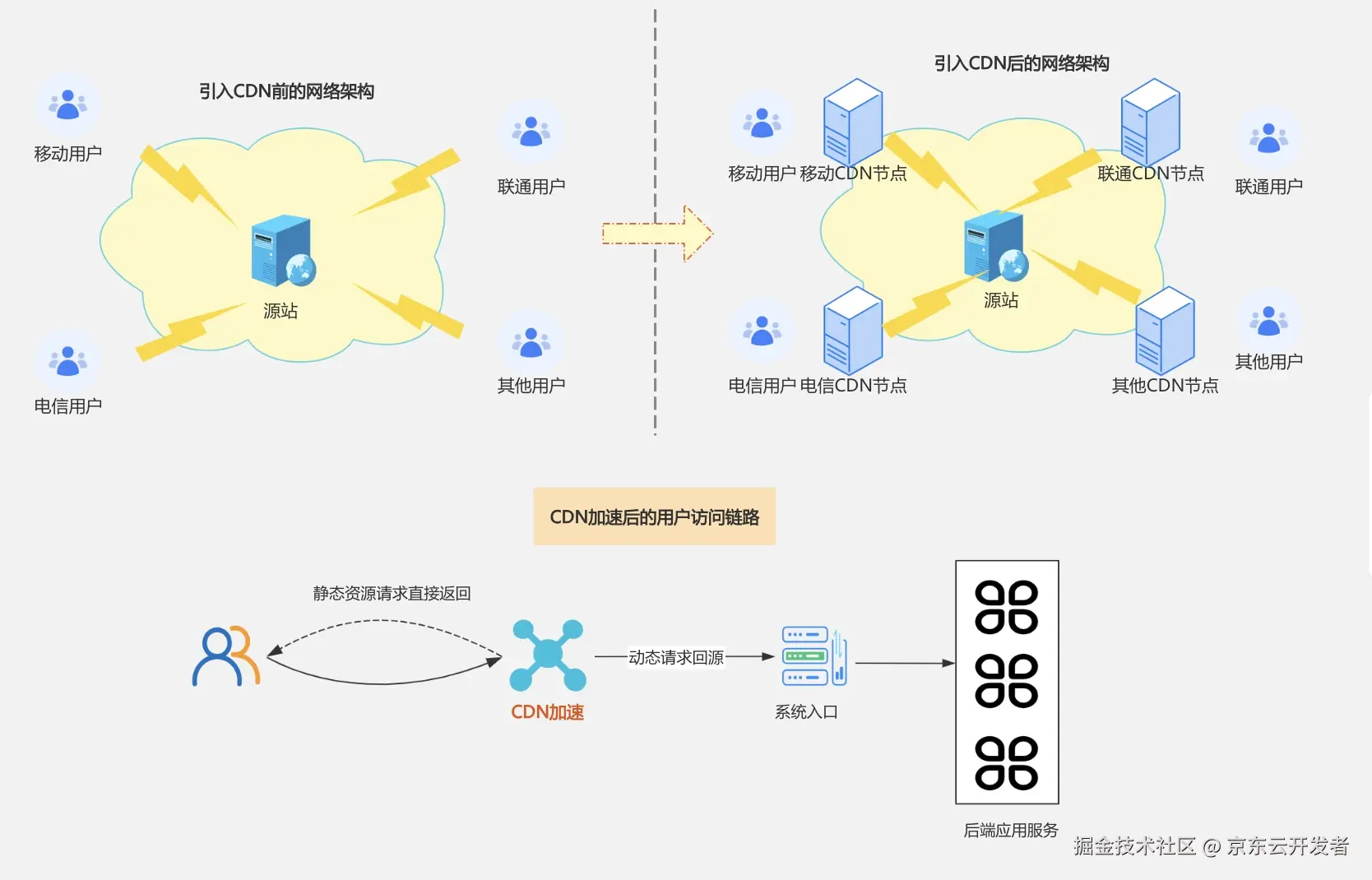 和原生应用优化不一样的是,除了数据传输优化还可以合理利用浏览器或客户端的本地存储能力(如LocalStorage, IndexedDB等),缓存静态资源和部分动态数据,减少重复请求;通过CDN加速,将内容分布到地理位置分散的服务器上,让用户从最近的节点获取资源,降低延迟。
