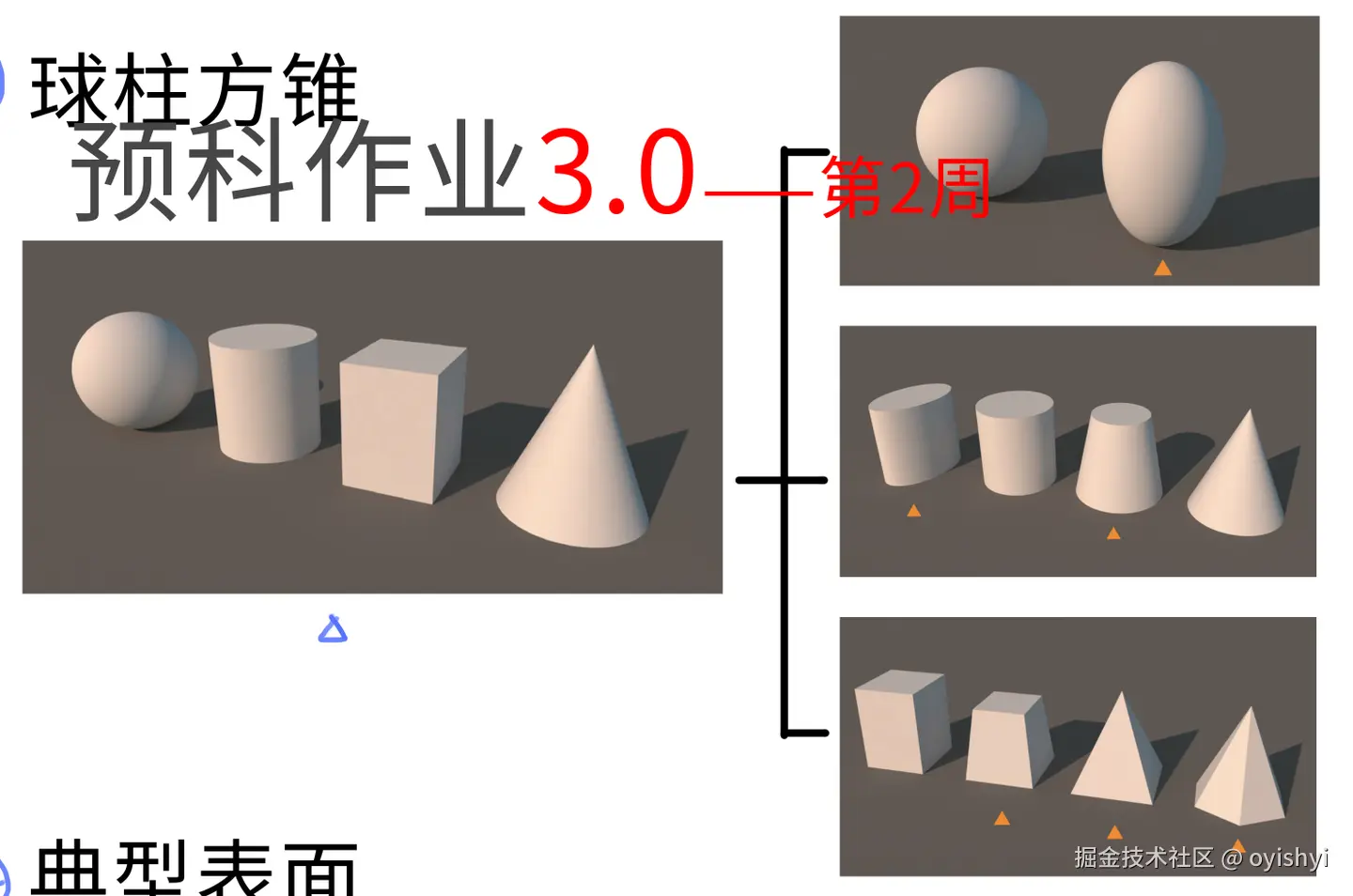 球柱方锥和之前形里提到的基本型概括很像,就是球,柱体,方形,锥体,只不过变成了 3D 的。