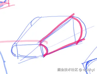 然后市面上所有的教程都在用方块做教程,因为所有的东西都可以用方块去装。而且方块都是等长,可以很直观看到透视规律。如下图这个圆圆的东西不好看出透视,但是装在方块里就好分辨了。