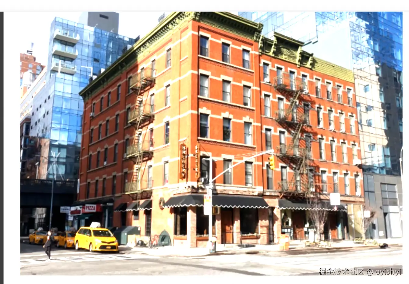 而有些情况透视准确会比较重要,就是物体之间靠得比较紧密的时候,这个时候物体之间的比例就会比较重要。如果画错了,就会有违和感觉得某个物体大小不对。像这个时候,其实常规做法是 3d 软件里先把物体弄上去。物体上面的细节我们再用手绘技巧加上去,比如房子用 3d,房子上的窗户海报啥的我们就可以自己加。